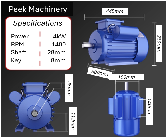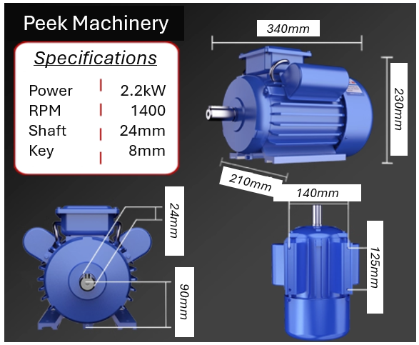 High quality, industrial grade single-phase electric motors with durable steel body and B3 foot mount. Running at 1400 RPM, they are ideal for heavy-duty workshop and machinery applications. Compact design for easy installation and reliable performance.